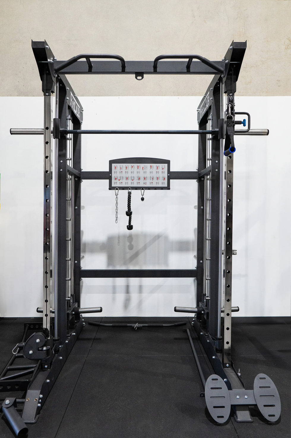 Experience safe and controlled lifting with the integrated Smith Machine, featuring a 300kg loading capacity, perfect for heavy lifts and beginners alike.