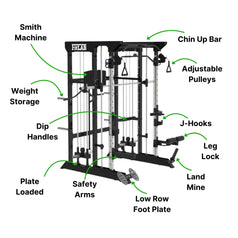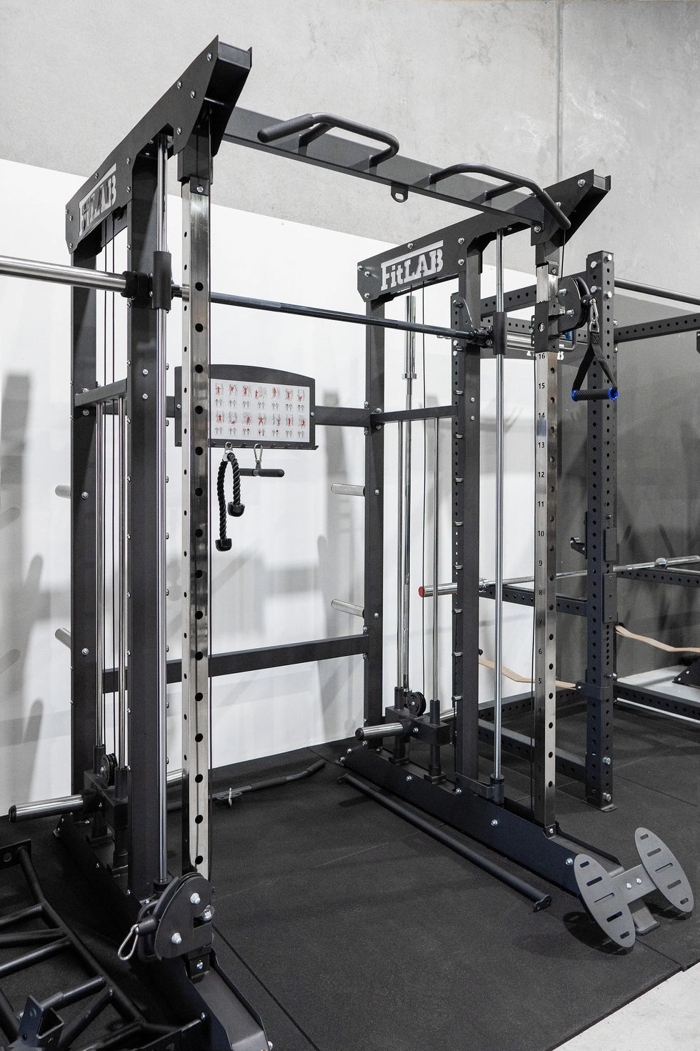 Achieve a complete workout with the FITLAB FX-100 All In One Trainer. This all-in-one trainer combines the versatility of a Smith Machine, Power Rack, Lat Pulldown Bar, and Multi-Grip Chin-Up and Dip Stations, all in one robust unit. Whether you’re targeting strength, muscle building, or functional training, this all in one trainer machine offers everything you need to hit your fitness goals without the clutter of multiple pieces of gym equipment.