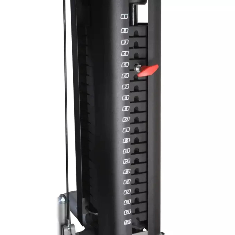 The weight stack is cleverly tucked into the rear of the machine for a sleek, space-saving design, while maintaining easy side-access for adjustments. This eliminates the hassle of navigating messy cables. Stylishly designed weight stack shrouds enhance both safety and the machine's aesthetic appeal.