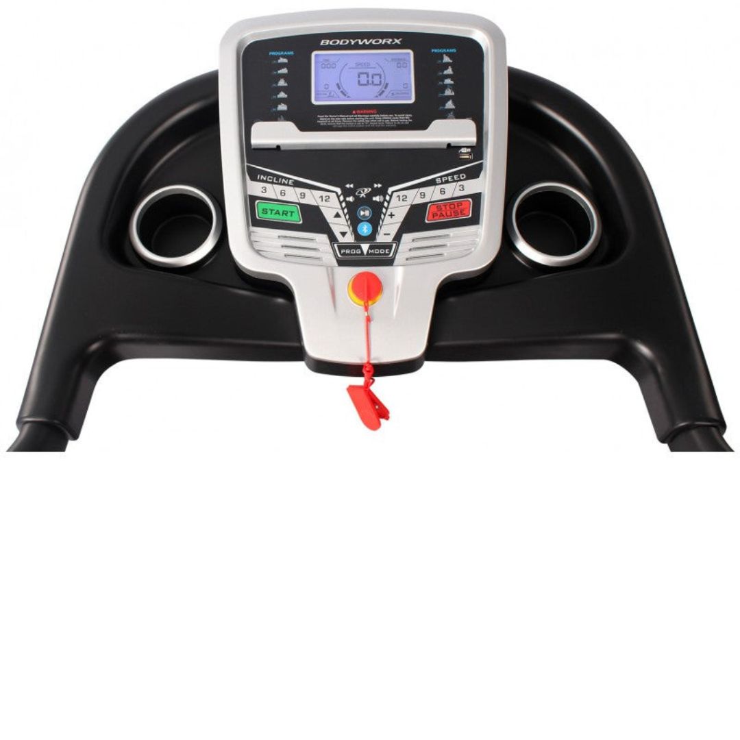 Stay motivated and entertained with the built-in speakers and Bluetooth music connectivity. Buying this running machine with USB port allows you to charge your devices while working out, ensuring you never miss a beat. The Bodyworx Challenger 150 Treadmill also features transport wheels, making it easy to move and store the treadmill when not in use.