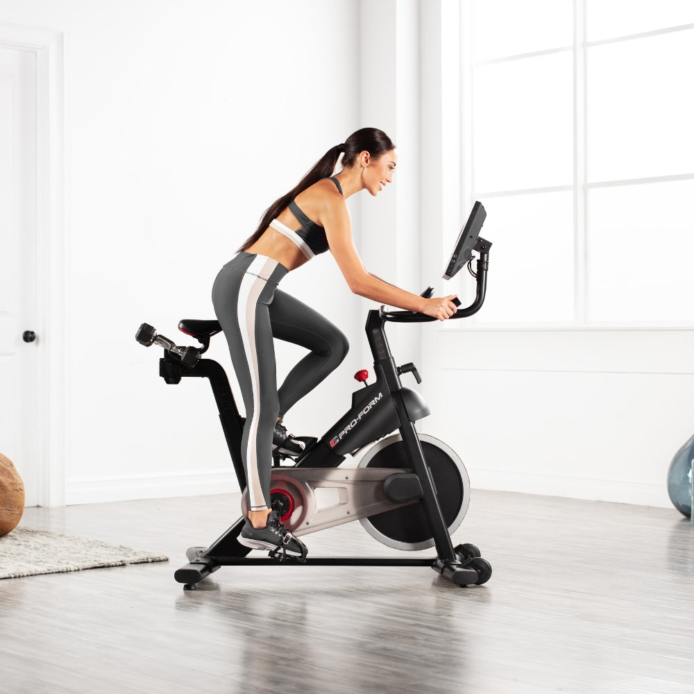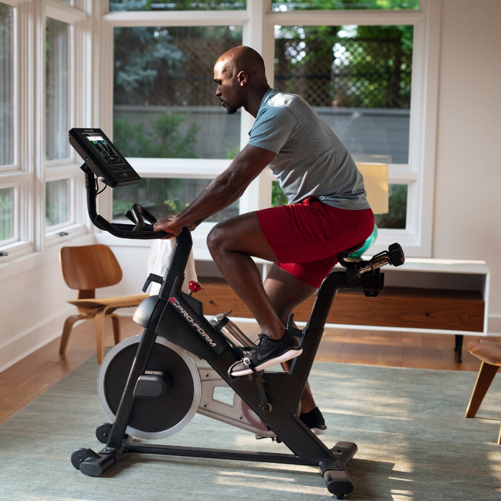 Maximize your living space with the compact design of Proform Studio Bike Pro. When your workout is complete, simply use the built-in transport wheels to roll it out of the way, keeping your home neat and organized.